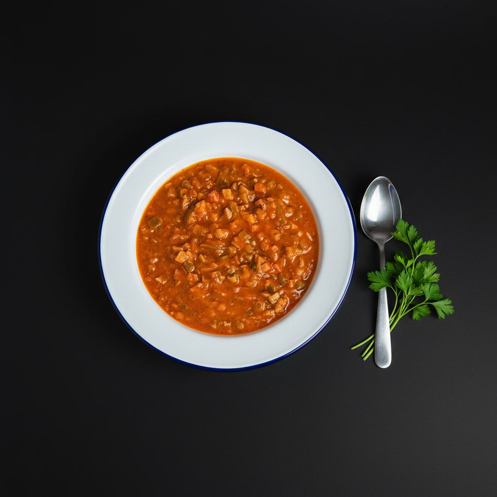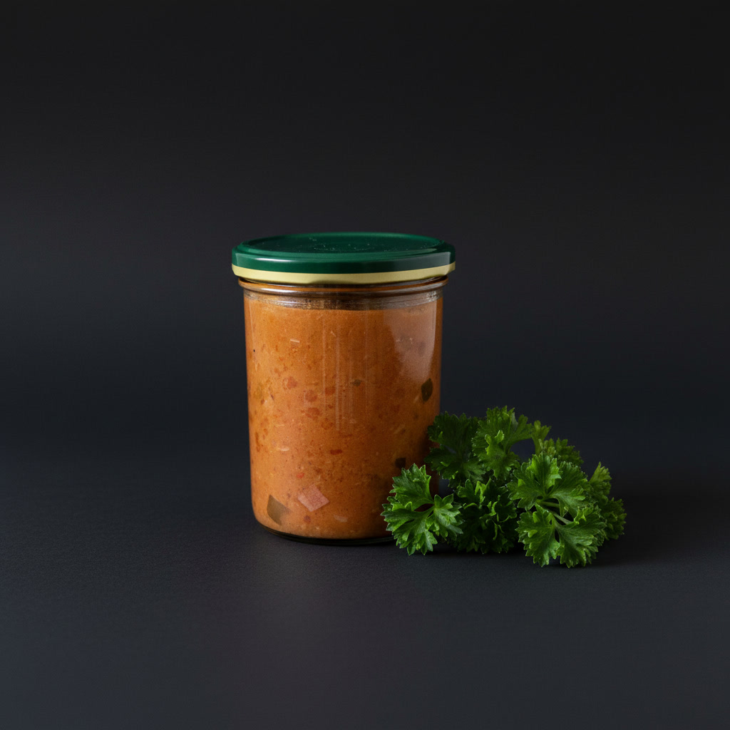 Eine aromatische Wild Soljanka, die durch kräftigen Wildgeschmack, feine Rauchnoten und eine harmonische Gewürzkomposition überzeugt. Das Wildfleisch sorgt für eine besonders intensive, natürliche Geschmacksbasis – herzhaft, authentisch und unverfälscht.