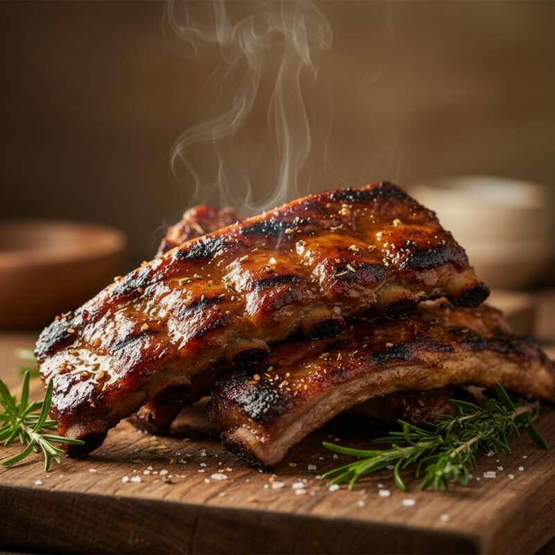 Wildschwein-Rippchen in Honig-Pfeffer-Apfel Marinade